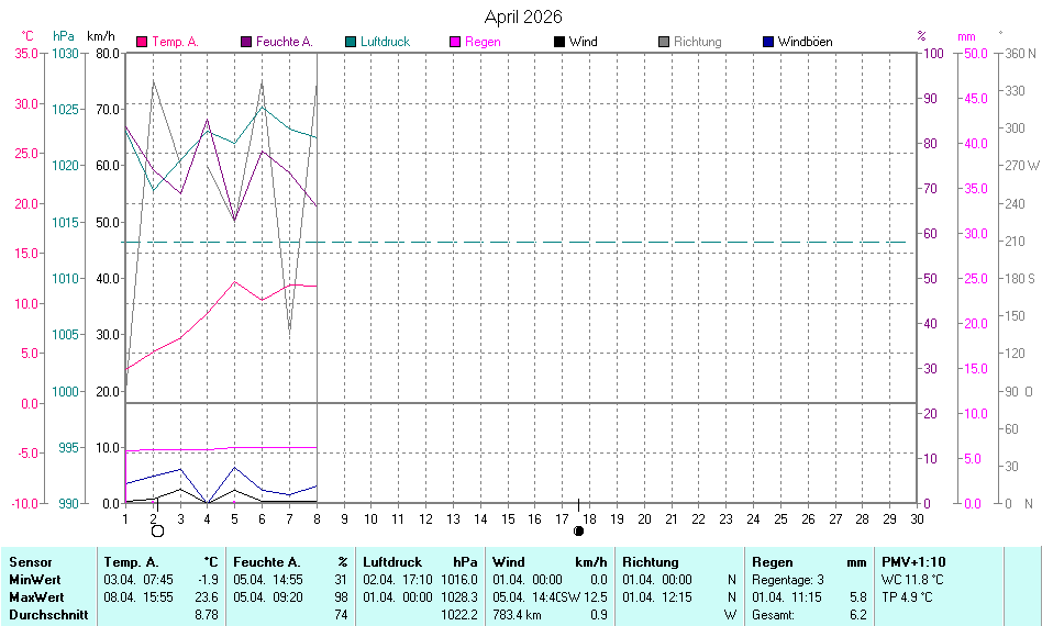 | Sonnenaufgang gestern | 06:50 8. April 2026 |