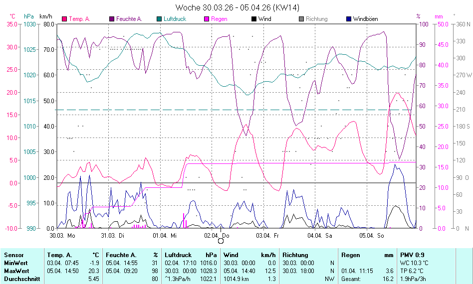 Max.(16:50) NW 14,5 km/h (3 Bft) |